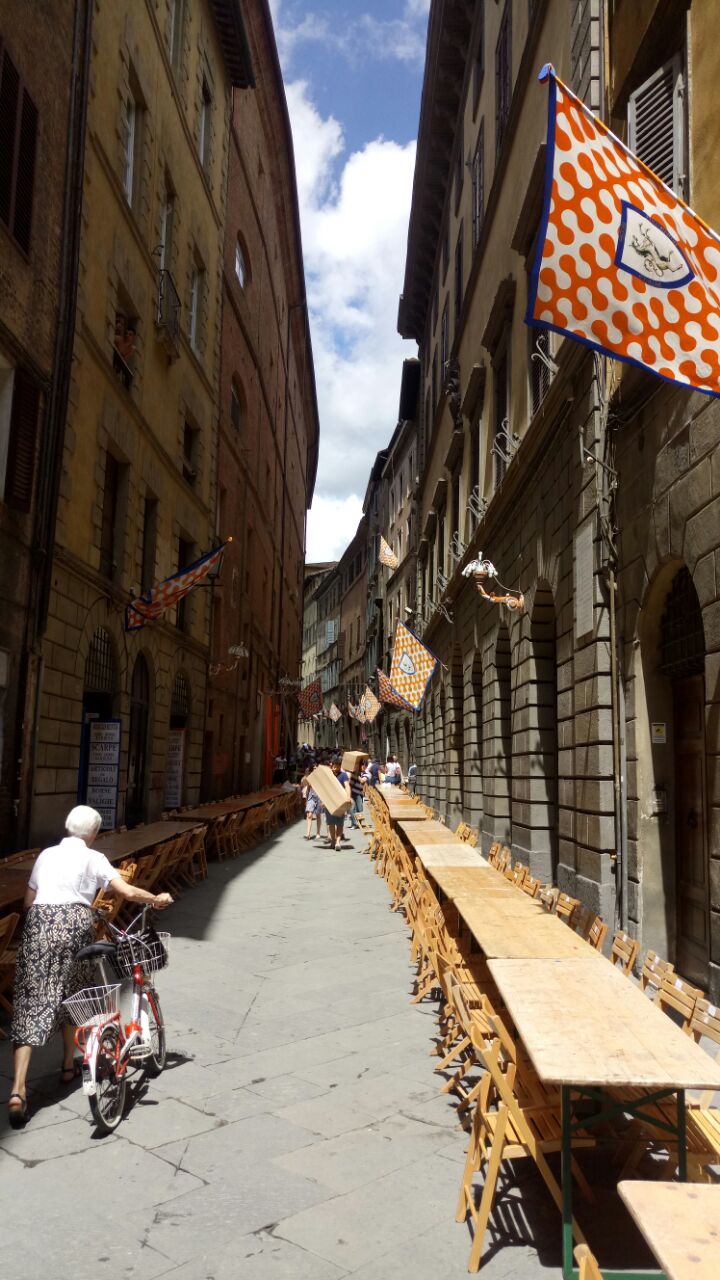 | El Palio sería al día siguiente y la ciudad ya se preparaba para la fiesta. |